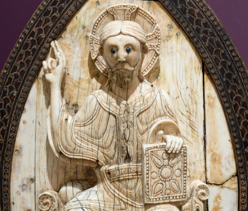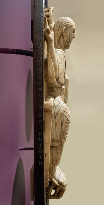 Historical Archive: Ivories from St. Aemilian reliquary Spain, 1060 to 1080 Christ enthroned: ivory on wood with agate eyes, 22.7 x 10.5 cm (8.9 x 4.1 inches) Dumbarton Oaks, Washington D.C., BZ.1948.12 Ramiro and companion panel: ivory with glass, St. Petersburg, Hermitage Ф-2908 Peter and Munius panel: ivory with glass, St. Petersburg, Hermitage Ф-2907 |
