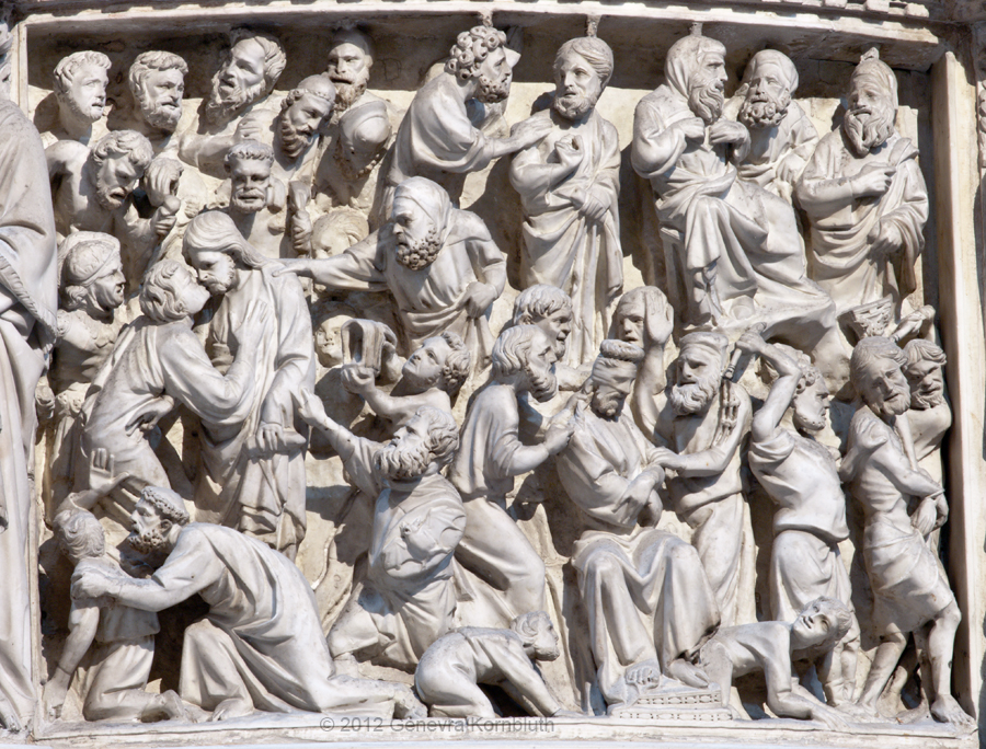 bat on figure center bottom: Giovanni Pisano pulpit 1302-10, which has its own page, in Pisa cathedral