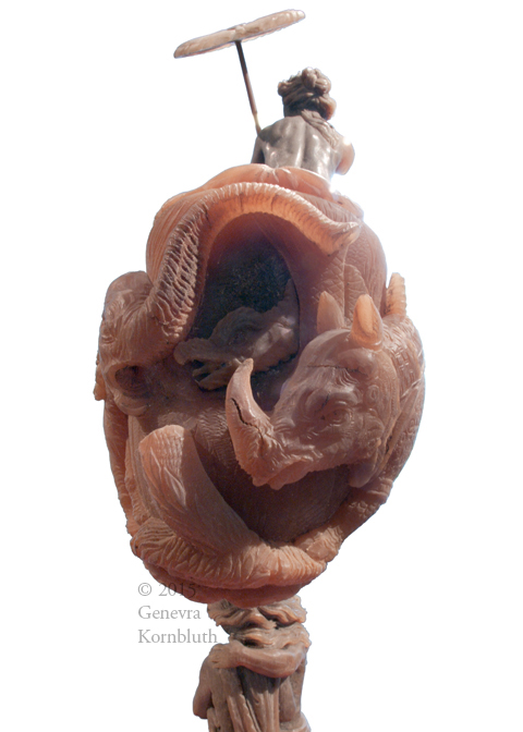 rhinoceros: covered cup with allegory of Africa, zebu horn, circle of Georg Pfründt c.1680, KGM K 3429, which has its own page with more of the rhinoceros
