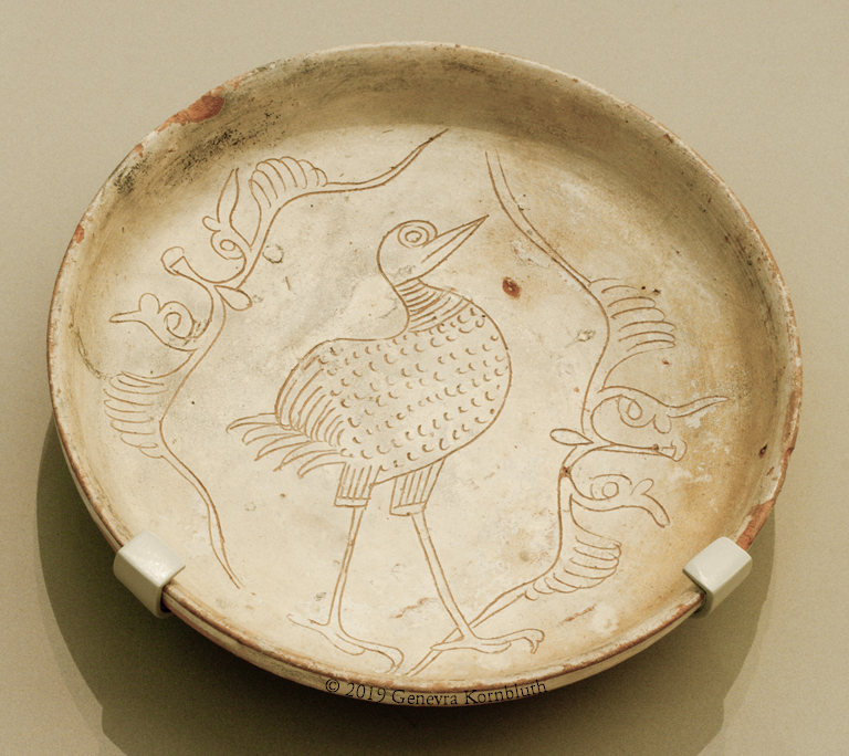 water bird: Byzantine sgraffito ceramic bowl, c.1125-75, V&A C.20-1970. For another view see V&A. Water/wading birds have their own page.