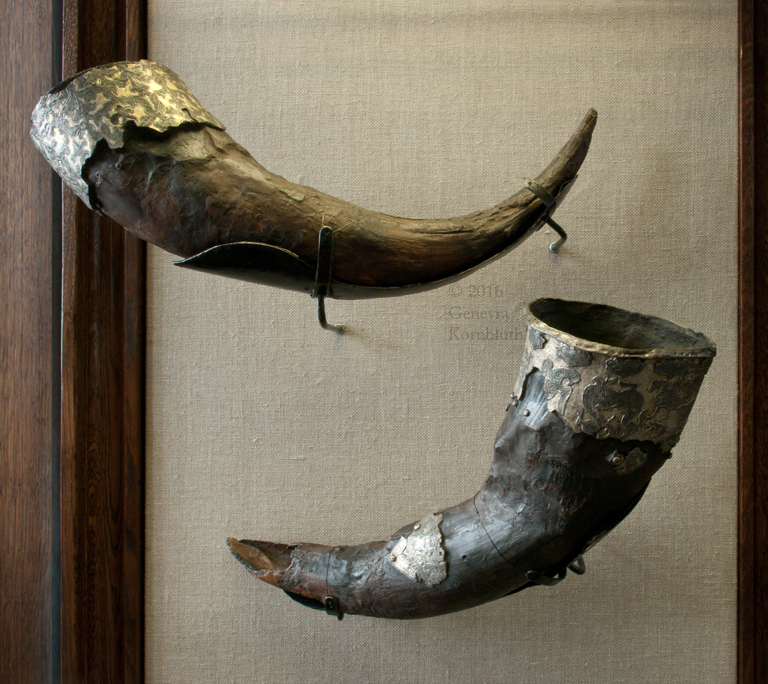 drinking horns with silver fittings, c.950-1000, Black Grave burial mound in Chernihiv, MSHM, which have their own page