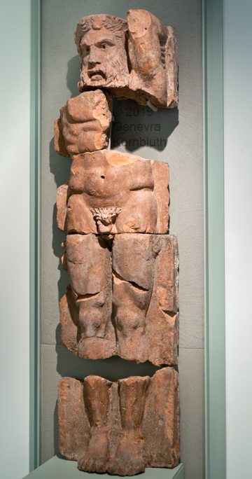 telamon (Atlas), terracotta, 1st c. BCE, fr. Panigai e Monastero, ANAM. For other views see ANAM.