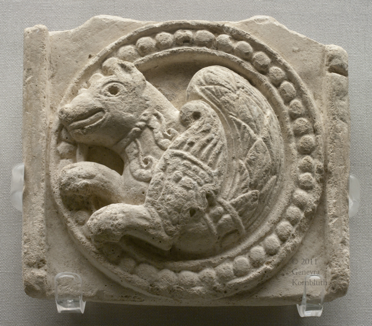 Molded stucco plaque with senmurv. Chal Tarkhan, Iran, late 7th-early 8th c., BM 1973,0725.1