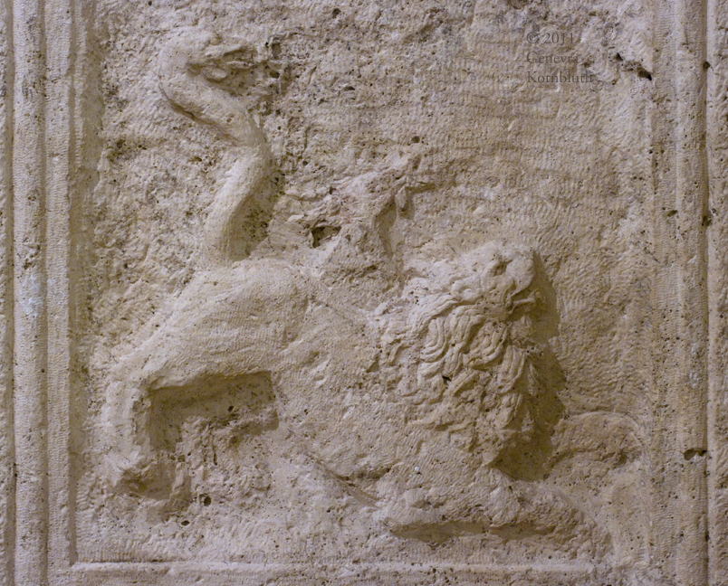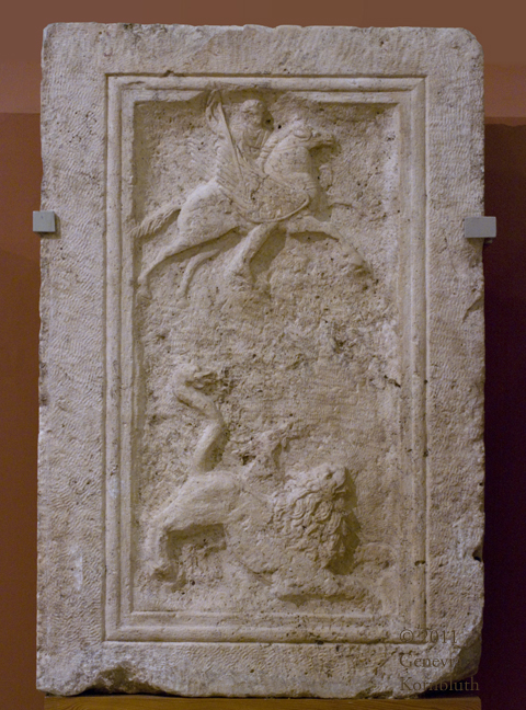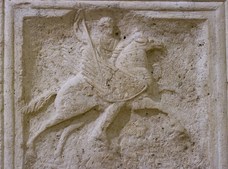 Bellerophon and the Chimaera, architectural sculpture, late 2nd-early 3rd c. Dunapentele (Hungary), HNM 27.1903.1