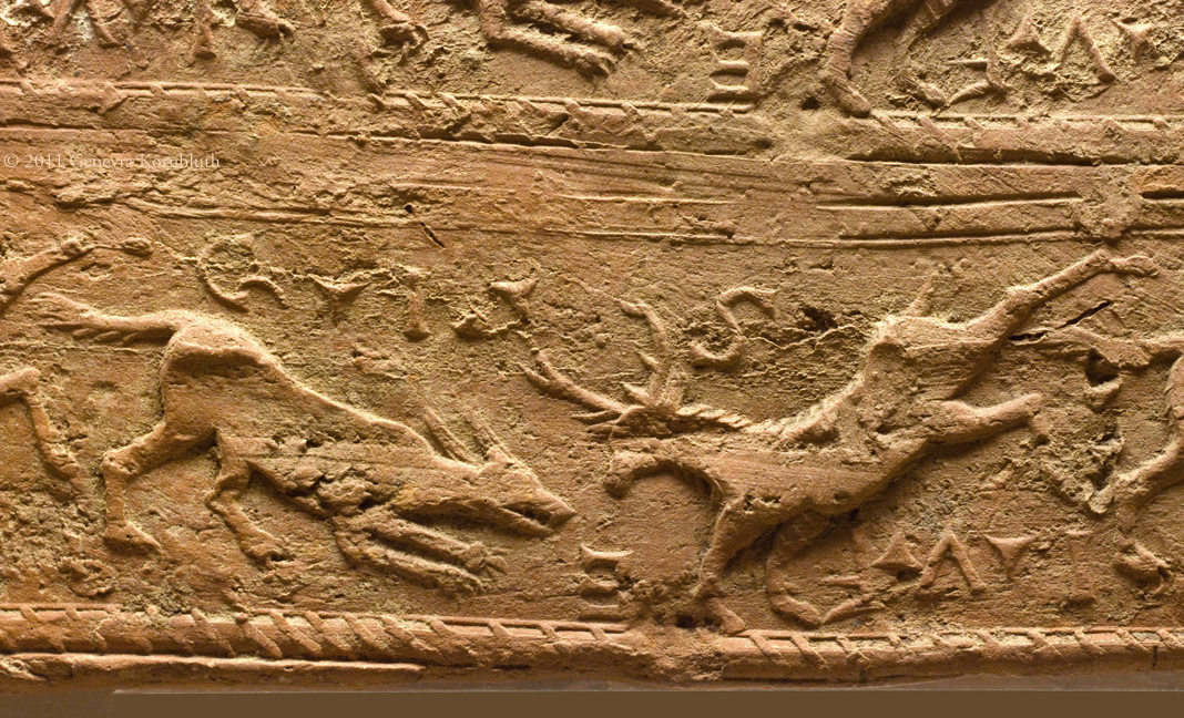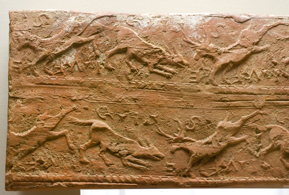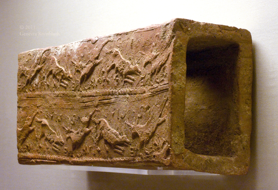box flue tile with stags and dogs, ceramic, poss. from Ashstead Villa (Eng.), Roman period, BM 1973,0403.72