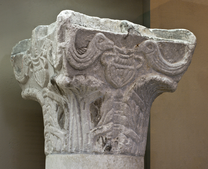 dolphins/vase capital, marble, Reims, early 5th c., Reims MSR 978.28697