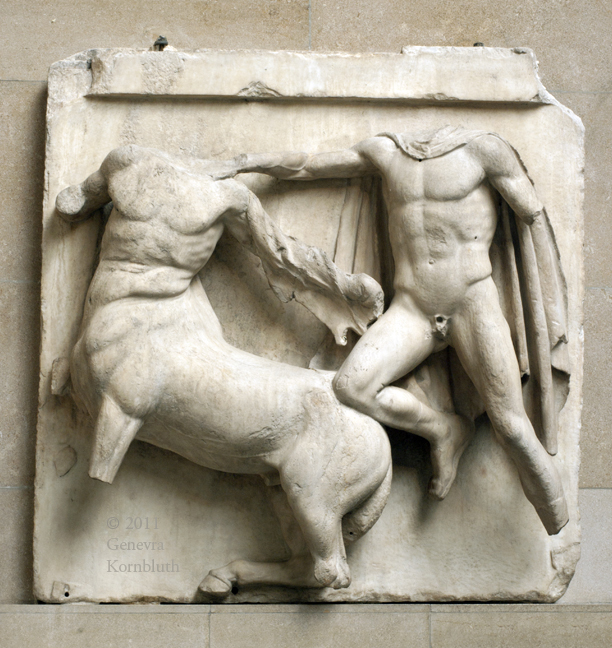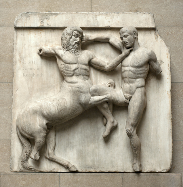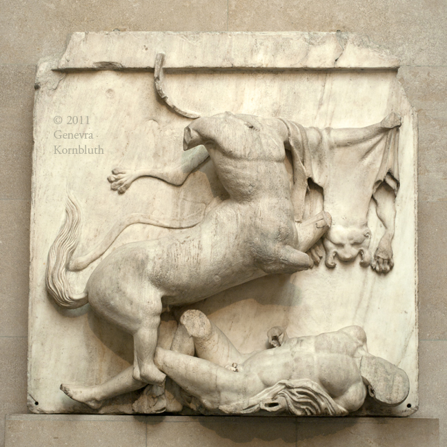 Parthenon South Metope III, marble, 447-432 BCE, BM 1816,0610.2. This work has its own page.