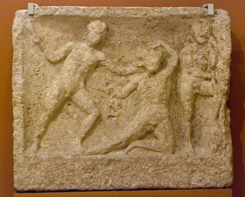 Theseus and the Minotaur, architectural sculpture, Óbuda (Hungary) late 2nd c., HNM 129.1868.1