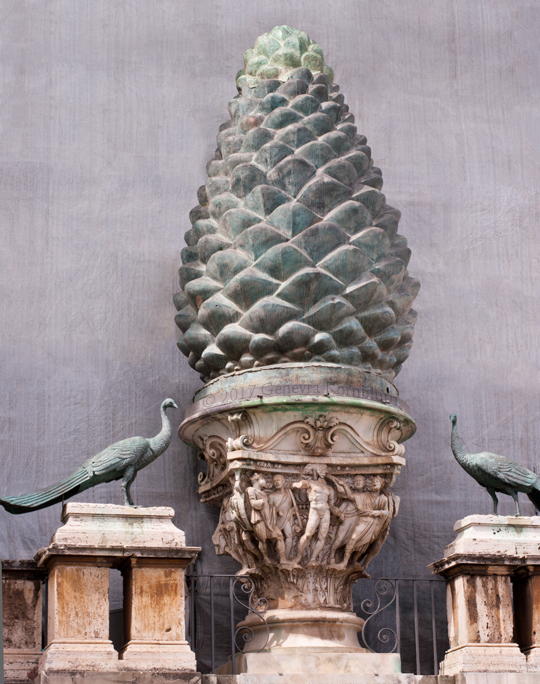 marble capital 227-29 (triumphant athlete) under pinecone fountain, 1st-2nd c., Vat. For another view see Vat.