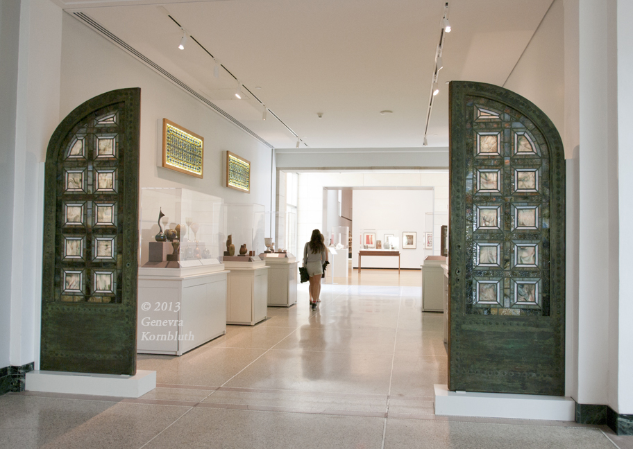 Louis Comfort Tiffany, Henry O. Havemeyer House, New York, front doors (exterior), wood, copper, and iridescent Favrile glass 1890-91, UMMA 1986.146.3A,B. Parts from this building have their own page.
