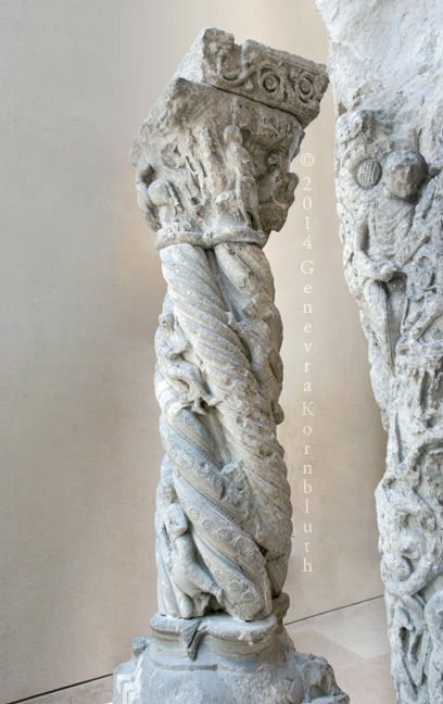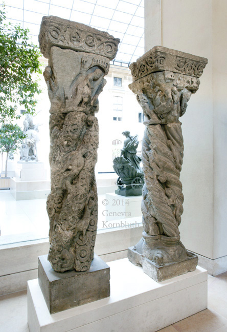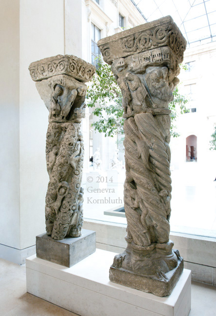 columns from Coulombs abbey (Eure-et-Loire), limestone, mid 12th c., Louvre R.F. 1376, 1375