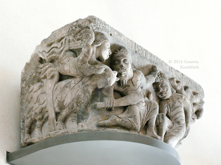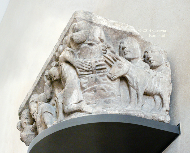 Abraham and Isaac capital from Notre-Dame-de-la-Couldre, Parthenay, limestone, mid 12th c., Louvre R.F. 1848