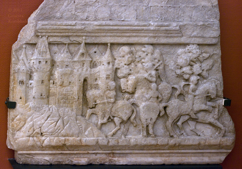 equestrian scene from Nagyvázsony castle (Hungary), c.1500, HNM. For other views see HNM.