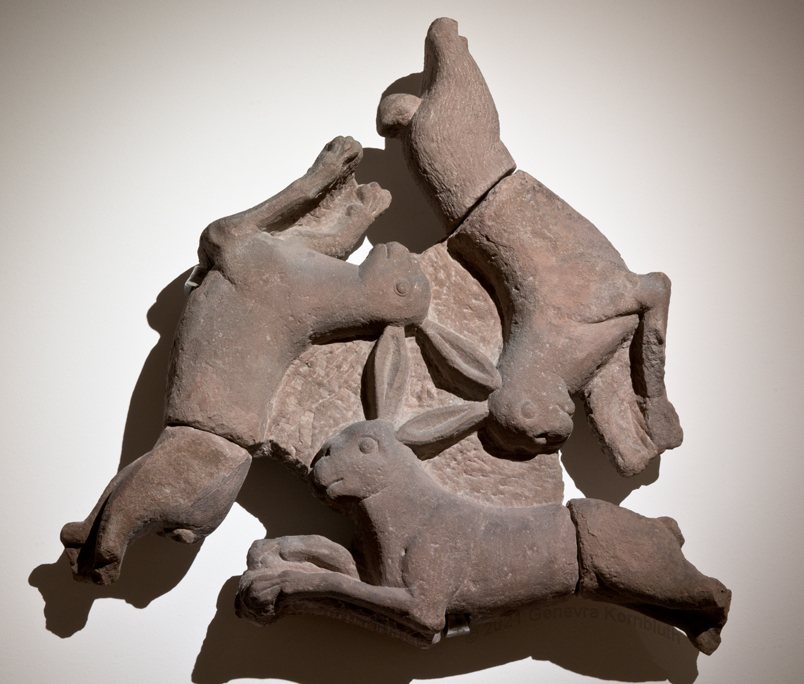 3 hares window fr. Paderborn cathedral cloister, frontal, sandstone, Westphalia c.1500-20, DMP SK804. For oblique view see DMP.