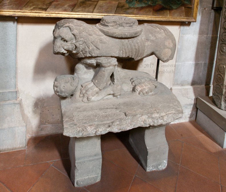 lion and man, poss. from a pulpit, c.1200? San Francesco, Pescia, which has its own page