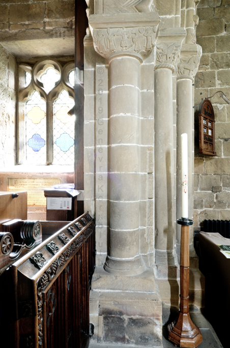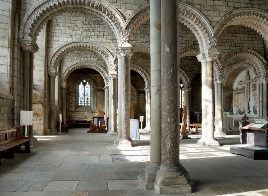 east/west columns in each cluster 1430s, north/south 1153-95, Galilee, Durham Cathedral, which has its own pages