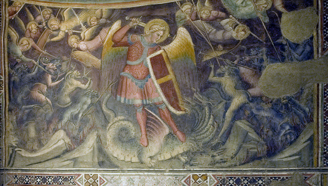 Arezzo, church of San Francesco, fresco St. Michael and the Rebel Angels, Spinello Aretino (1350-1453)