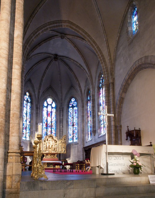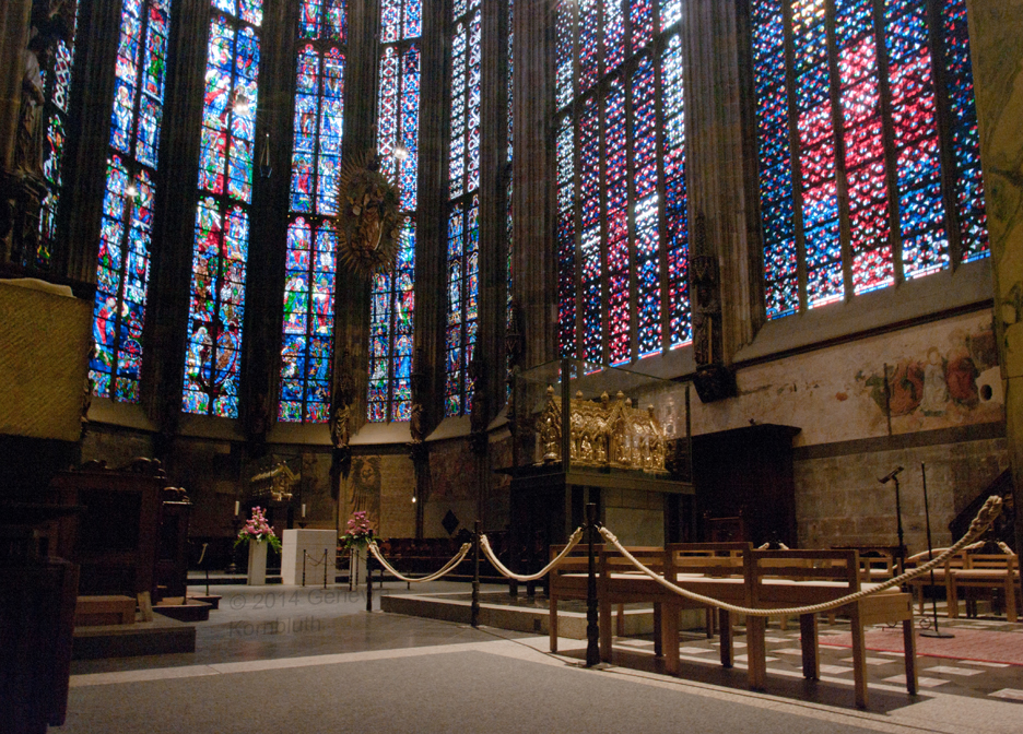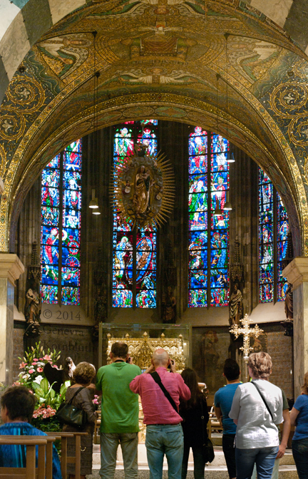Walther Benner windows 1949-51: Aachen cathedral choir from octagon. The cathedral has its own pages.