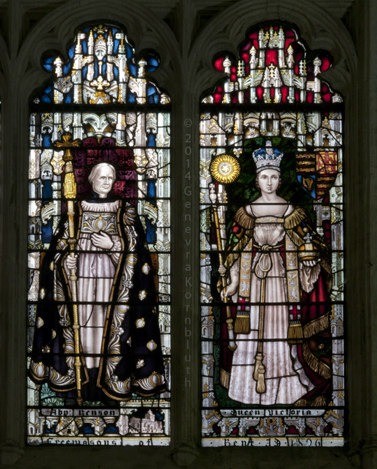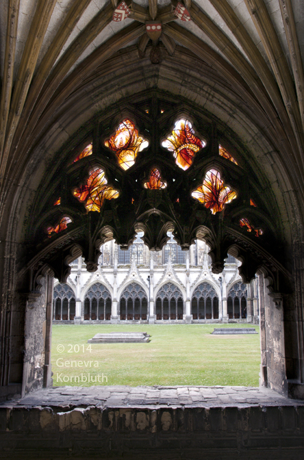 Emma Lindsay 2014 stained glass, Canterbury cloister. The cloister has its own own page. Glass copyright: artist/heirs.