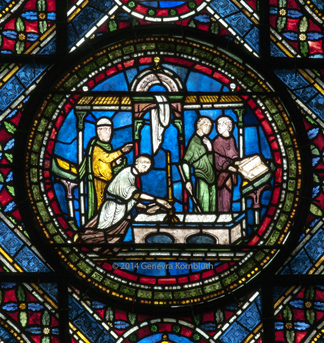 Becket miracle window, Samuel Caldwell Jr. 1919-49, Canterbury cathedral. Canterbury cathedral glass has its own own page with more examples.