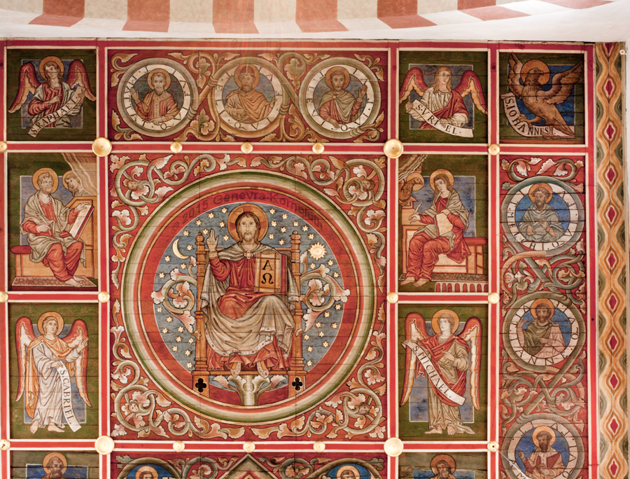 Joseph Bohland, nave ceiling Tree of Jesse, eastern end remade 1959-60, St. Michael's, Hildesheim, which has its own pages