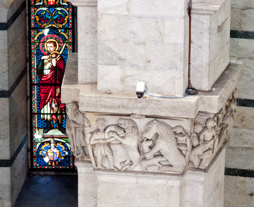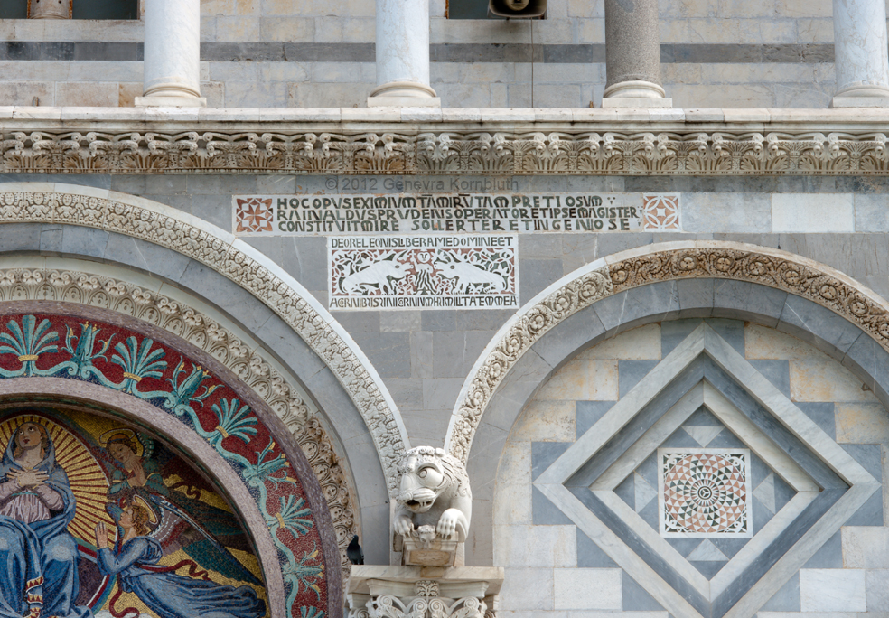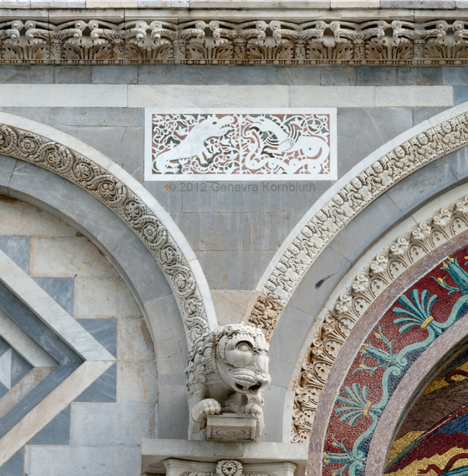19th-c. inlay panel, lion, other copies of original features, ext. Pisa cathedral, which has its own pages