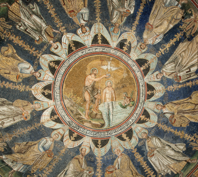 Felice Kibel 1860s: heavy restoration of Baptism, Ravenna, Orthodox baptistery. This work has its own pages.