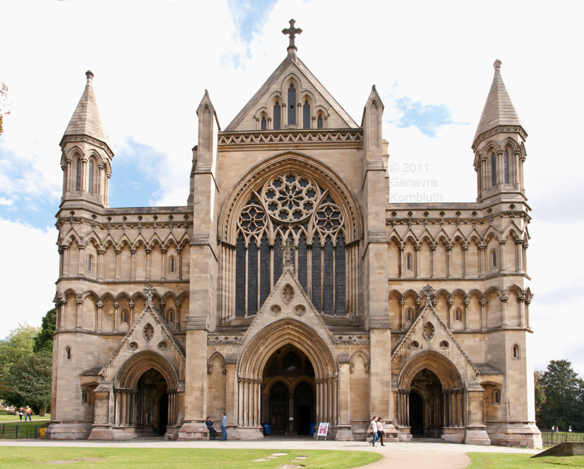 St Albans cathedral west front, Grimthorpe 1880-83; St Albans has its own pages with more Grimthorpe and 1878 Gilbert Scott vaulting.