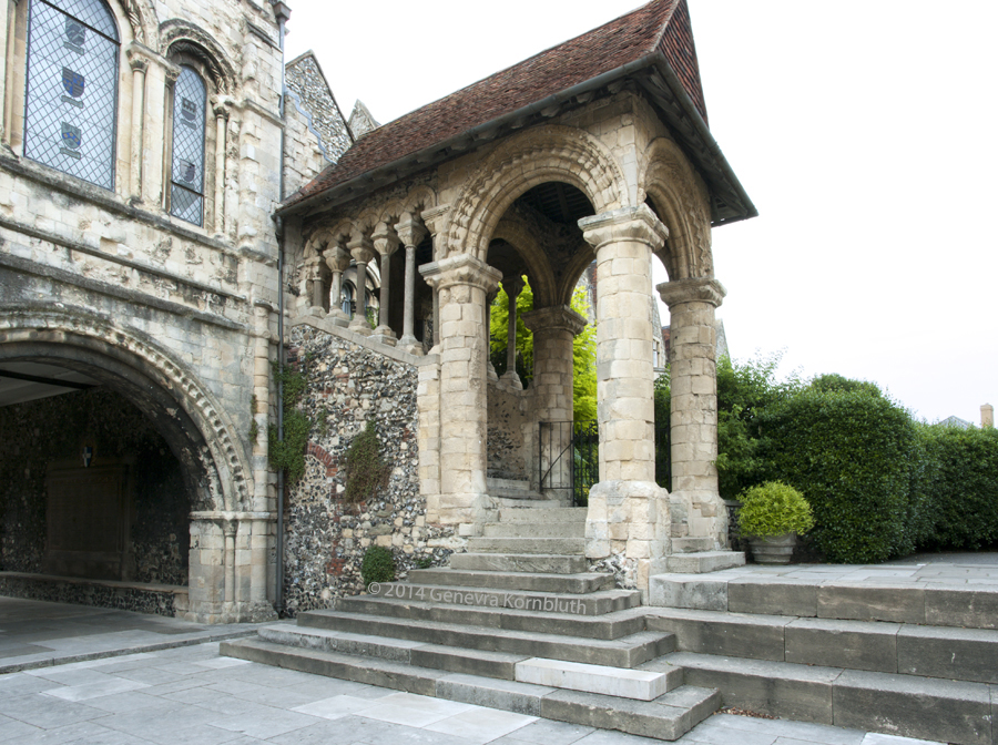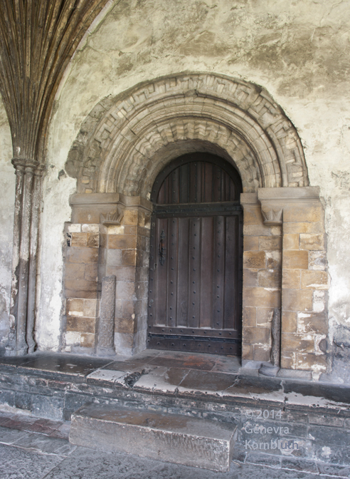 12th-c. entry to monks' dormitory, Canterbury cloister. The cloister has its own page.