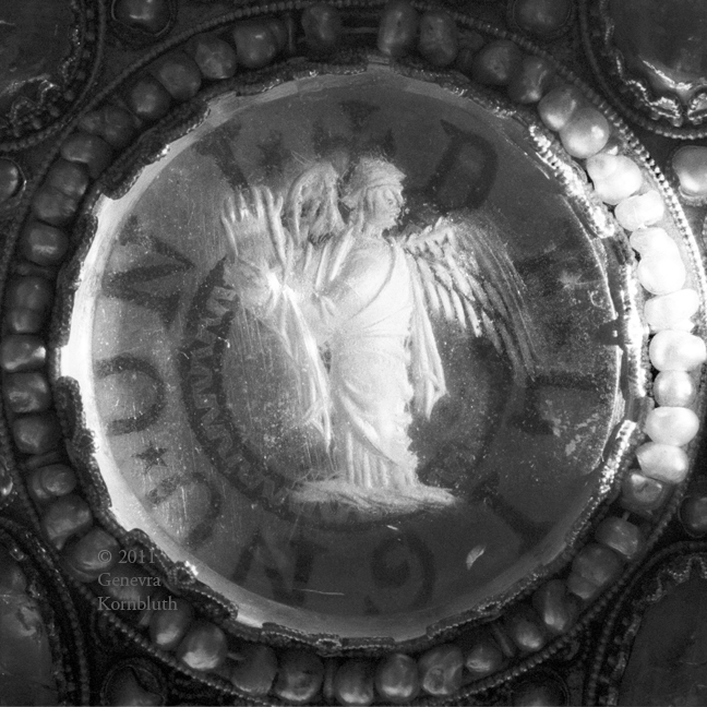 crystal intaglio mid- to late 9th c. on Enger cross, c.1100, SMB KGM 88,635, which has its own page with more gems