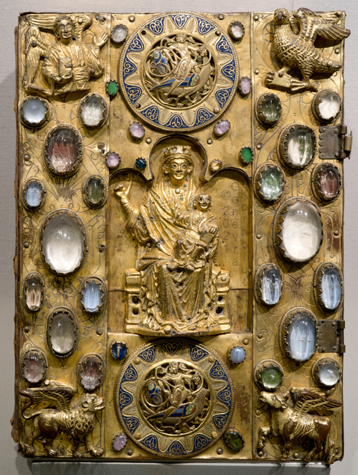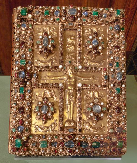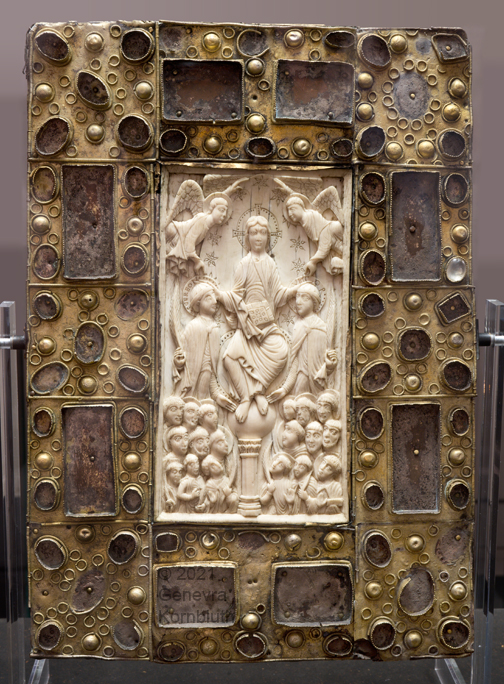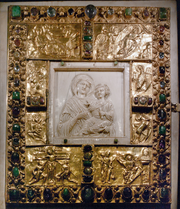 Book cover, gold/ivory/gems/enamel, metalwork c.1020, AachenCT. The cover has its own page.