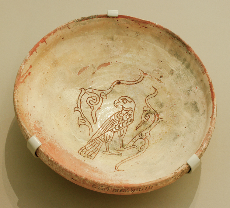 Byzantine sgraffito ceramic bowl with bird of prey, c.1125-75, V&A C.32-1968