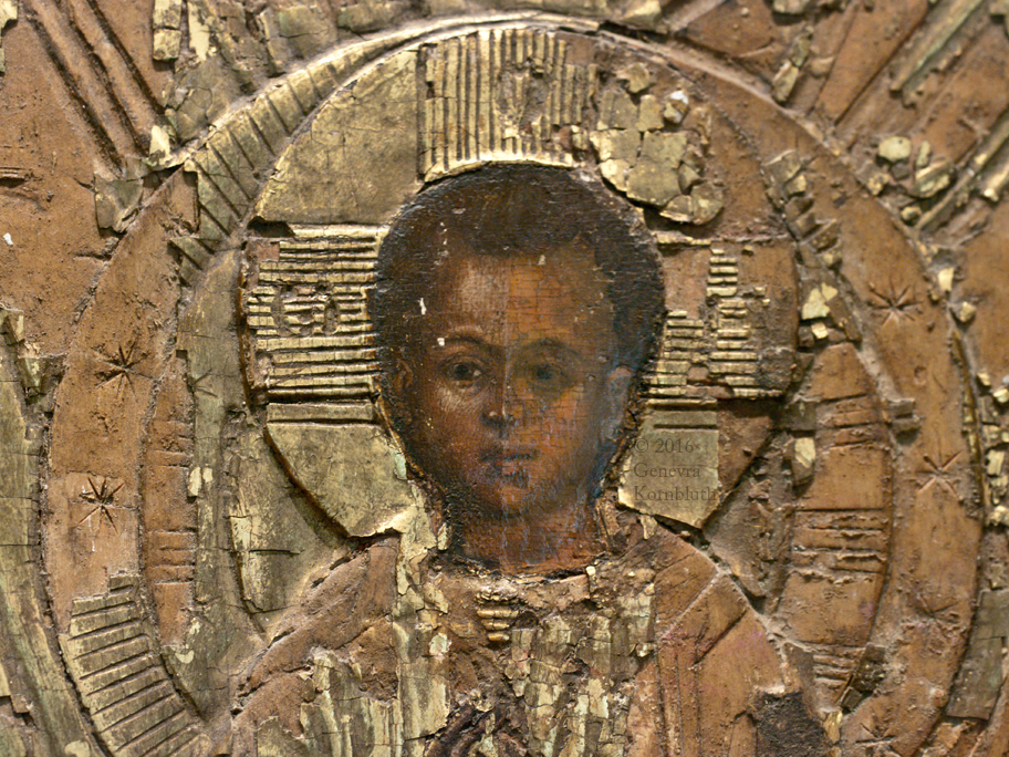 icon Our Lady of the Sign, mid 12th c. before 1169, Novgorod Cathedral, which has its own interior page. This photo not available at high resolution.