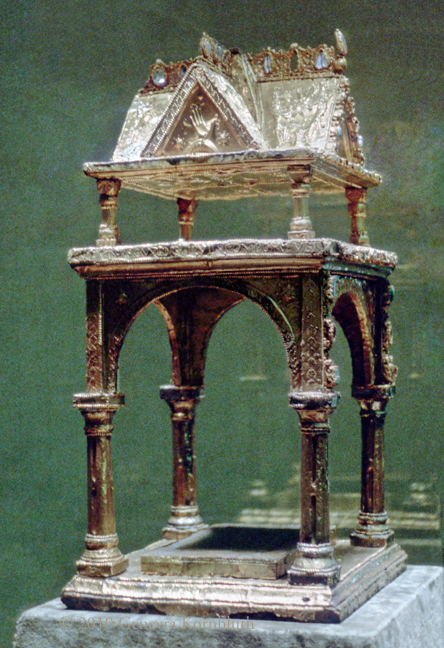 Arnulf Ciborium, gold, c.890, Munich Residenz, Schatzkammer. This object has its own page.