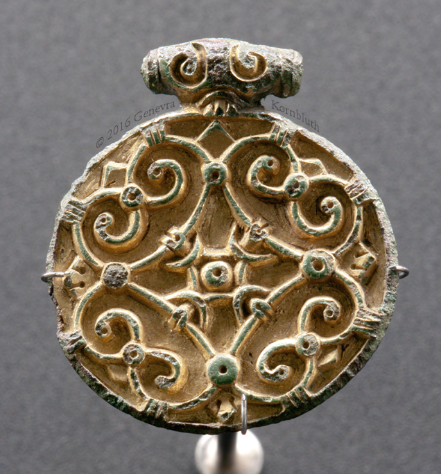 Tortoise brooch fr. Oslo, bronze/gilt, 9th-10th c.? OHM C2222. For profile view with companion brooch see OHM.