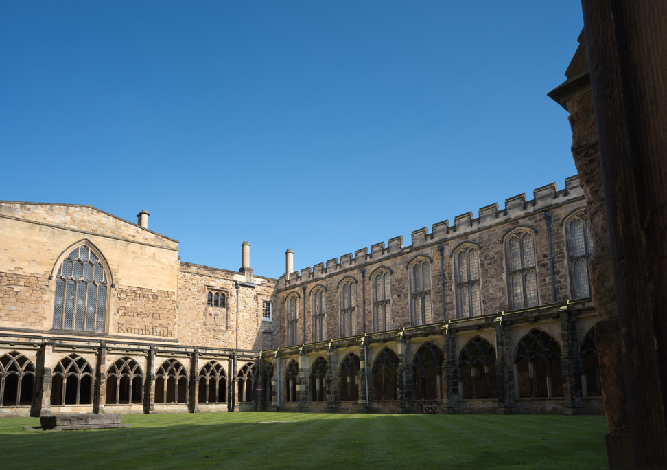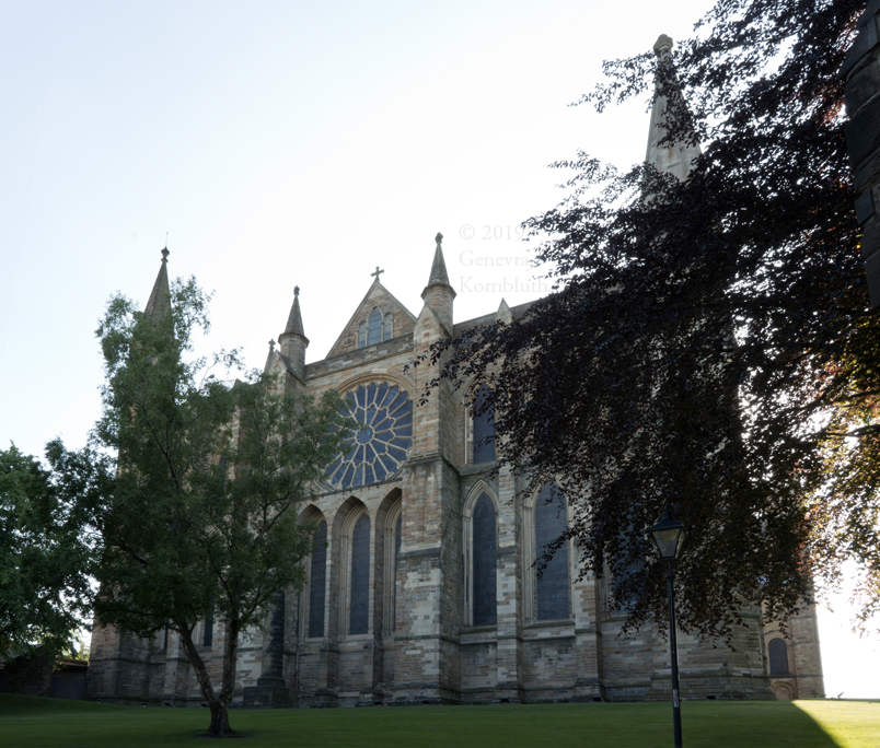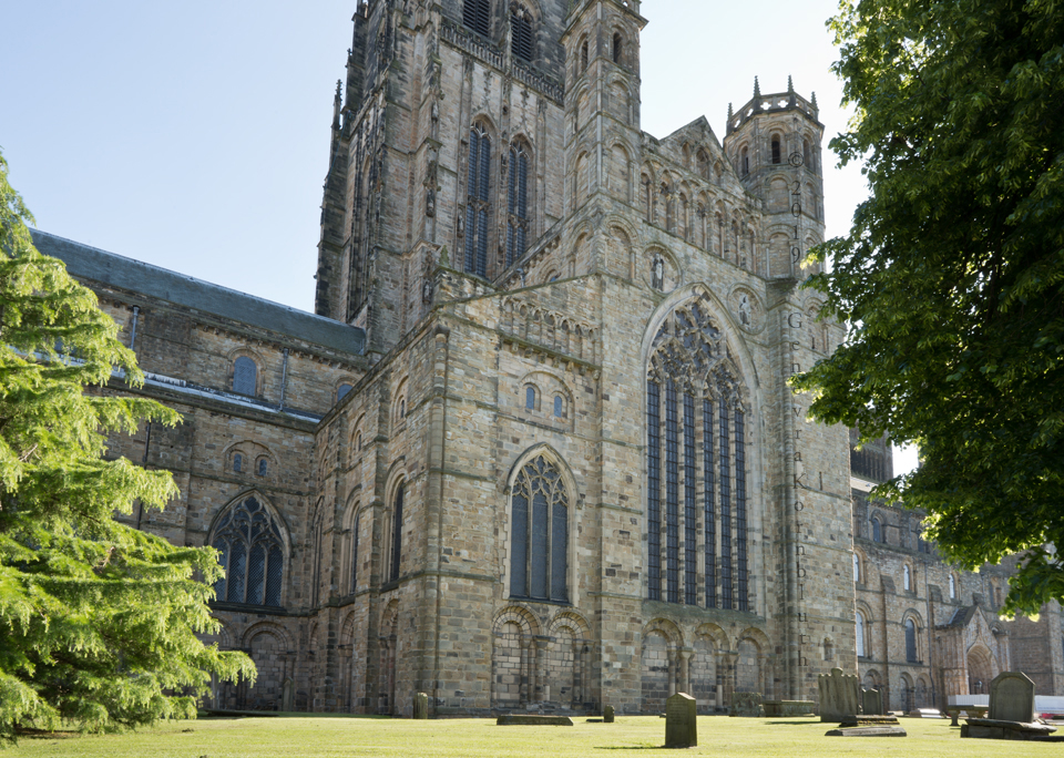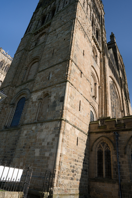 Historical Archive: Cathedral Church of Christ, Blessed Mary the Virgin and St Cuthbert of Durham Exterior and Cloister present building begun in 1093 under Bishop William of St Calais choir complete by 1104, nave 1100-1133 western Galilee Chapel (Lady Chapel) 1175-89 western towers around 1200, spires removed 1658, parapets and pinnacles 1801 eastern transept 1242-90, Richard of Farnham probably master mason central tower 1465-74, second storey around 1490, upper part refaced 1859 cloister current form late 15th c., tracery 1764-69, renovations 19th c. entire building: outer 2 to 4 inches of weathered exterior stone removed after 1777 |