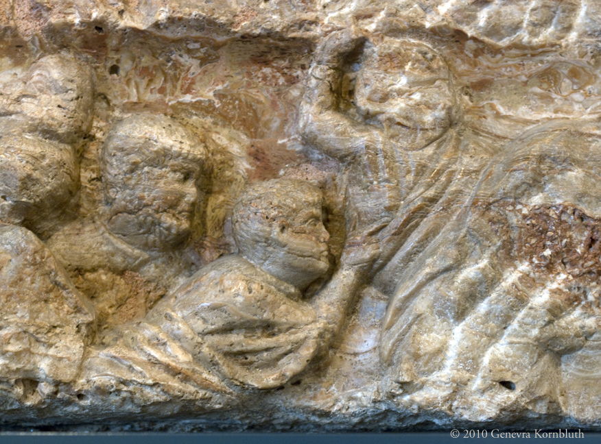 sarcophagus fragment: Doubting Thomas, from the monastery of St. Angela Merici, Church of St. Afra, 'African onyx' marble, mid 4th c., Brescia Museum of Santa Giulia MR5852