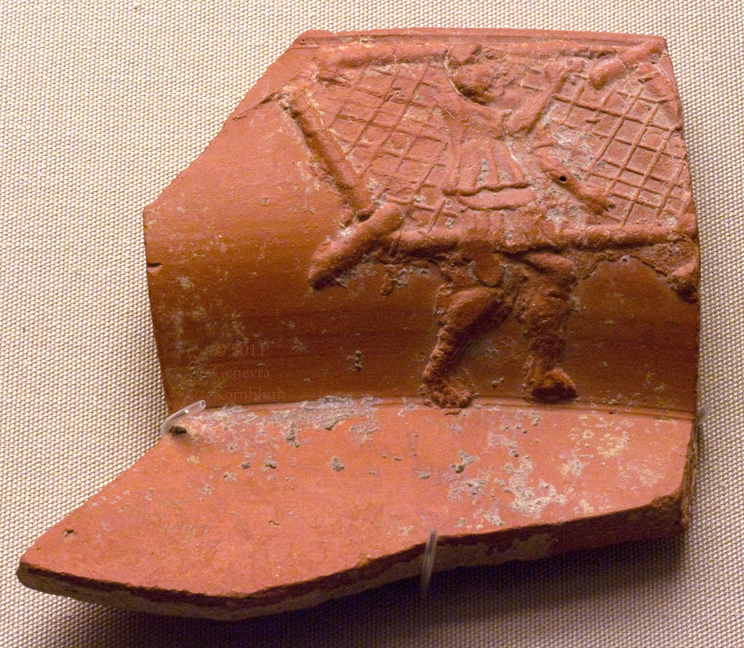 Healing of a paralytic: lanx fragment, African red slipware, Carthage c.360-420, BM MME 1986,0701.6