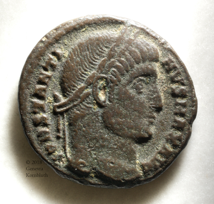 coin of Constantine I obverse, copper alloy, Constantinople 327-28, DO BZC.1948.17.498