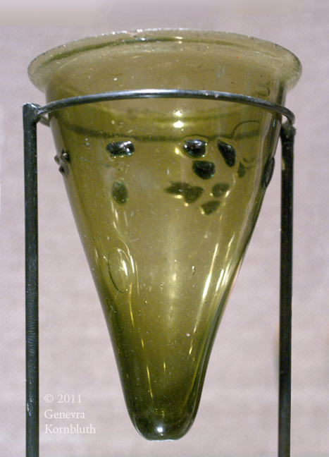 conical lamp from Karanis, free-blown glass, 3rd-5th c., KM 0000.00.5545
