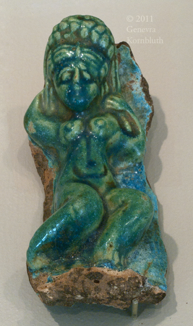 reclining woman (Aphrodite?) from Karanis (Egypt), faience, 1st-3rd c., KM 0000.02.5986