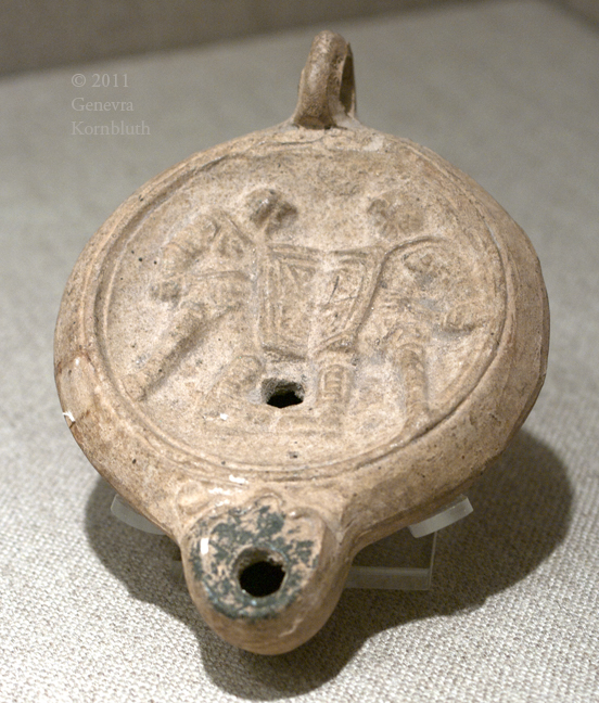 lamp with gladiators, ceramic, 3rd c. Egypt, KM 1971.02.0233
