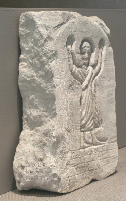 grave marker for Heron, age 2, limestone, early 4th c. Terenouthis (Egypt), KM 0000.02.1002