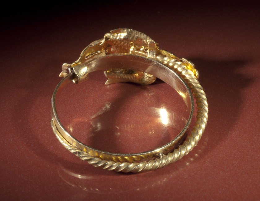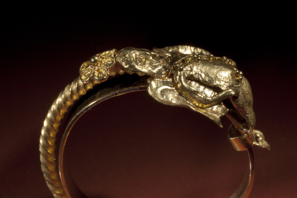 Historical Archive: Eros ring Greek gold earring, around second century CE set on modern ring band p.c. Sands of Time