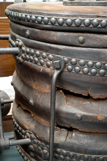 bellows from G. Woodman smithy, leather/iron 1898, Ewell