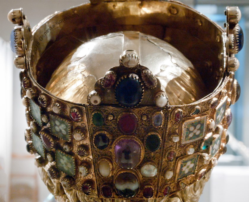 stemmed cup from Somogyvár (Hungary), enameled glass, 15th c. Venice, HNM. For another view see HNM.