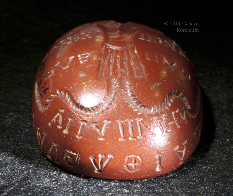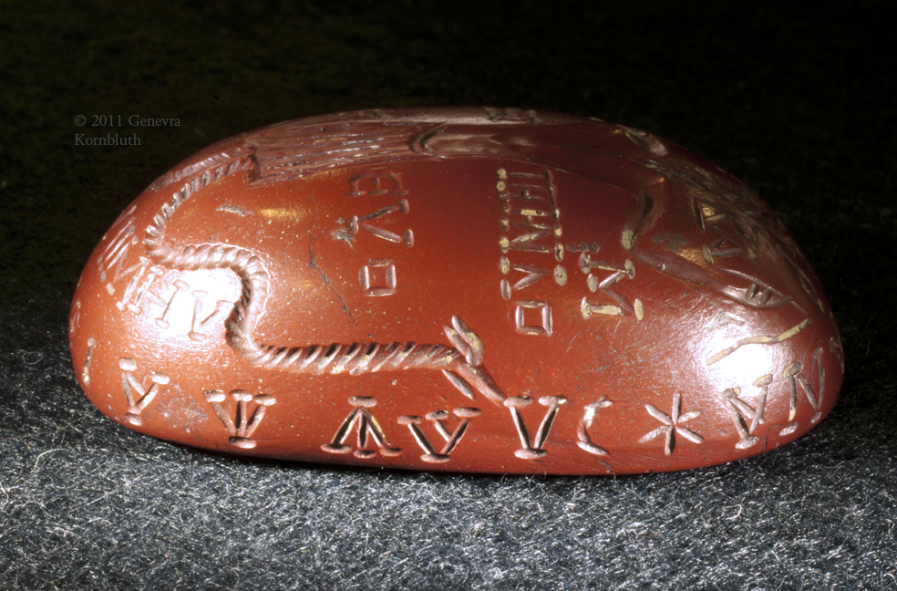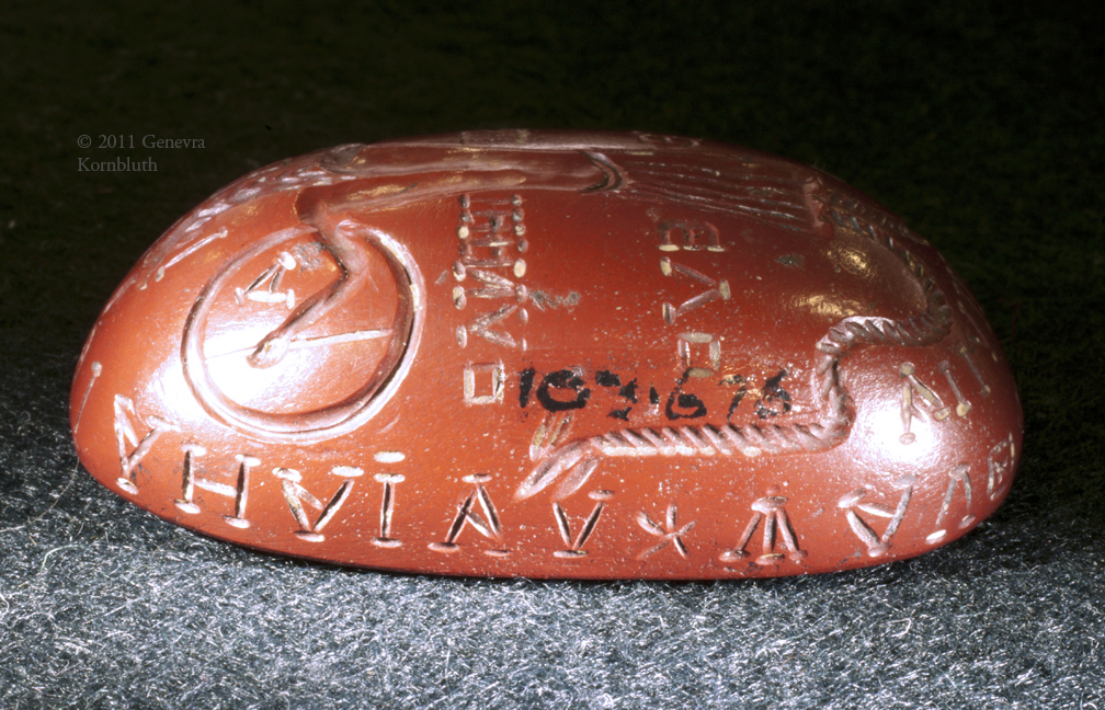 Historical Archive: Intaglio with Abrasax and Chnoubis jasper, 3rd century, 43.6 x 28.2 x 14.4 mm Lewis Collection, Fitzwilliam Museum, Cambridge