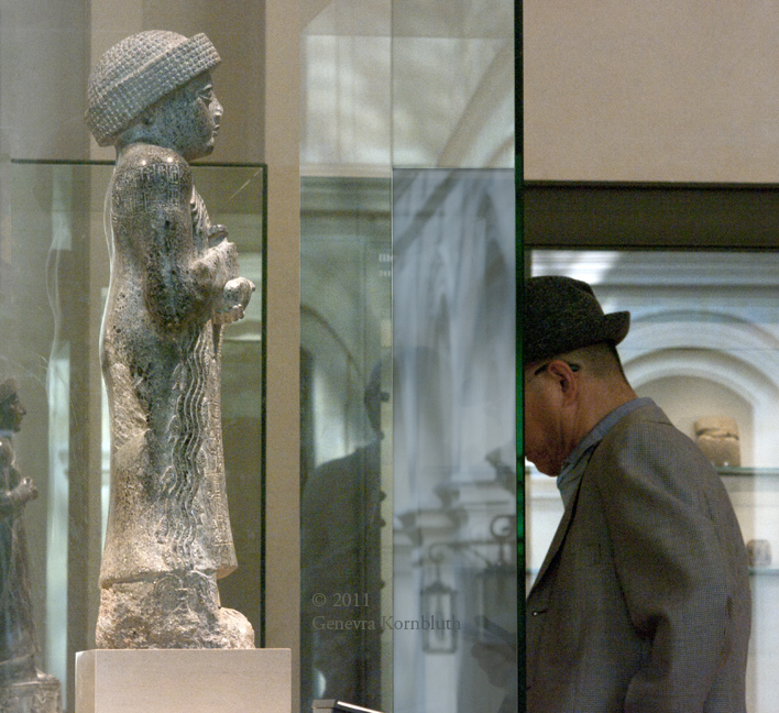 Historical Archive: Gudea, prince of Lagash, holding an overflowing vase; Gudea "au vase jaillissant" from Girsu (modern Tello, Iraq). Neo-Sumerian, c.2120 BCE. Dedicated to the goddess Geshtinanna. Dolerite, 62 x 25.6 cm. Louvre, Near Eastern Antiquities AO 22126