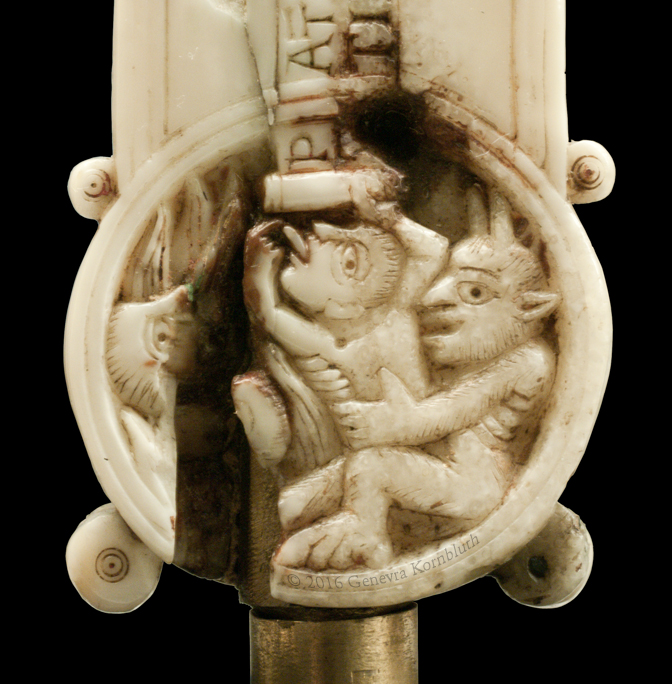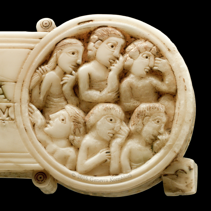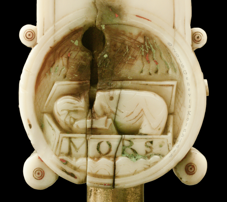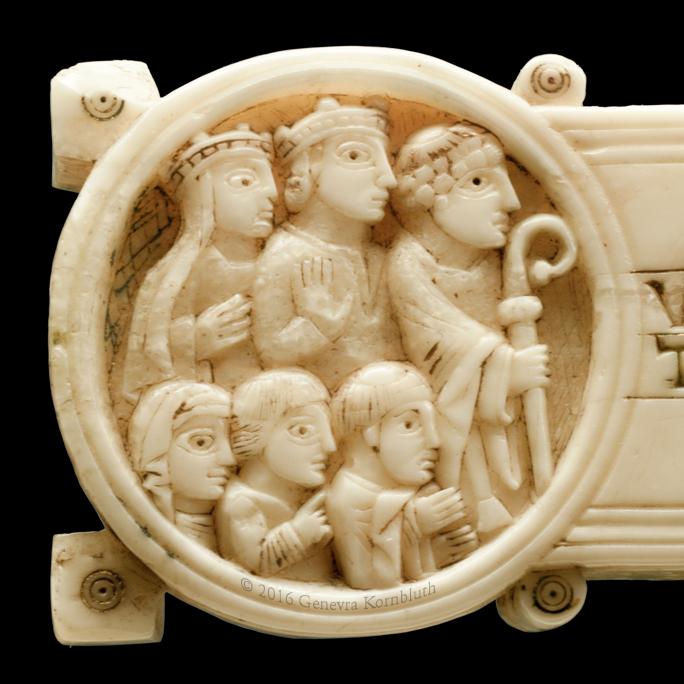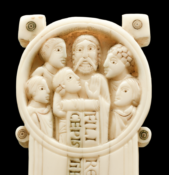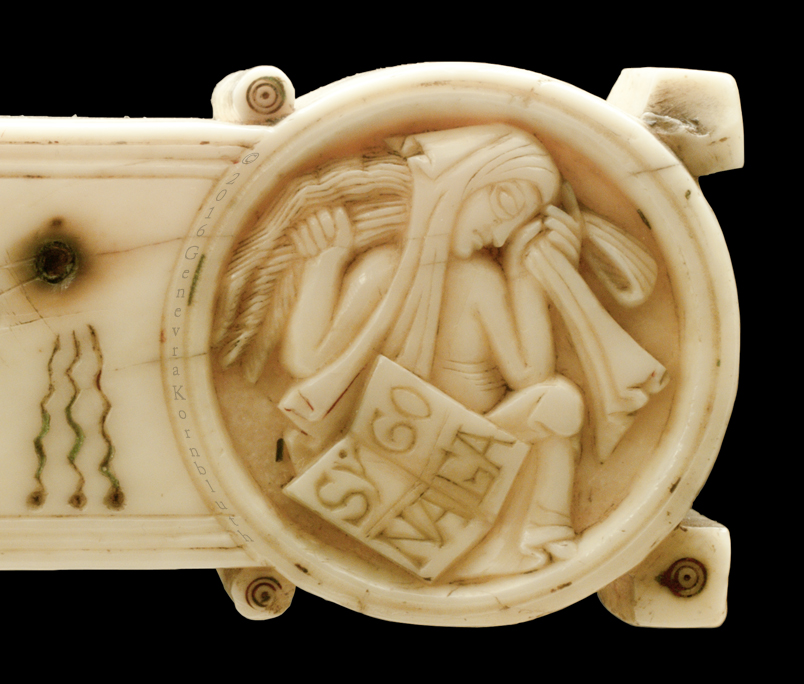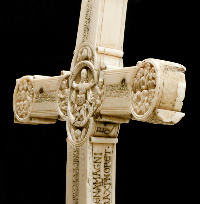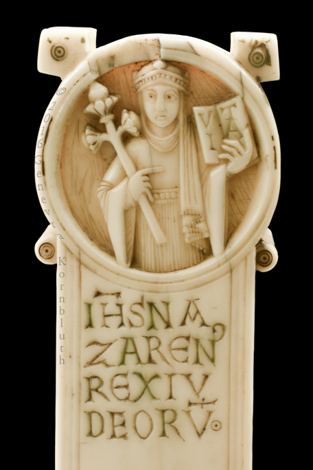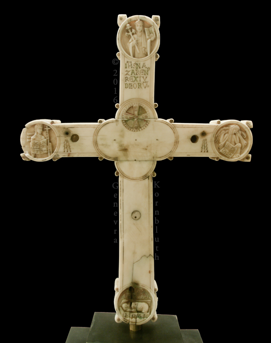 Historical Archive: Gunhild Cross made for Gunhild, probably daughter of King Sweyn III Grathe (d. 1157) around 1150 or 1170-1175 walrus ivory with traces of pigment, 28.5 x 22 x 2.5 cm (11.22 x 8.67 x .98 inch) Latin inscription on narrow sides: "Who sees me, let him pray to Christ for Helena, daughter of King Sweyn Magnus, she who had me made in memory of the Lord's passion. Those who believe in Christ crucified pray in memory of Liutger who carved me at the request of Helena, who is also called Gunhild." Copenhagen, National Museum of Denmark 9087 |