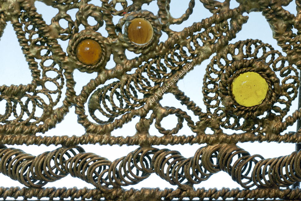 balustrade portion from the third floor stairwell, gilt metal and opalescent Favrile glass 1890-91, UMMA 1986.146.6